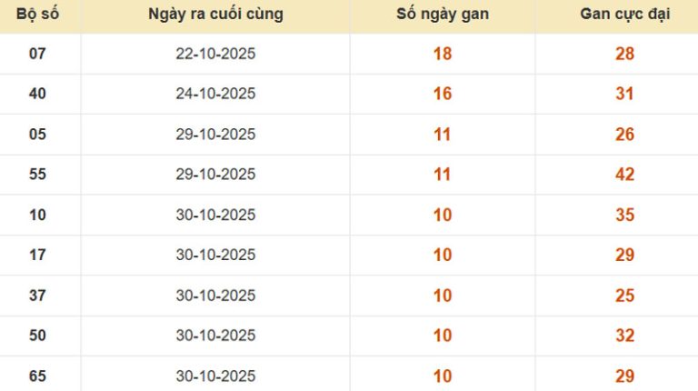 Thống kê lô gan XSMB 10/11/2025 hứa hẹn mang lại cho bạn nhiều thông tin bổ ích, tham gia ngay để không bỏ lỡ cơ hội về bờ bạn nhé: