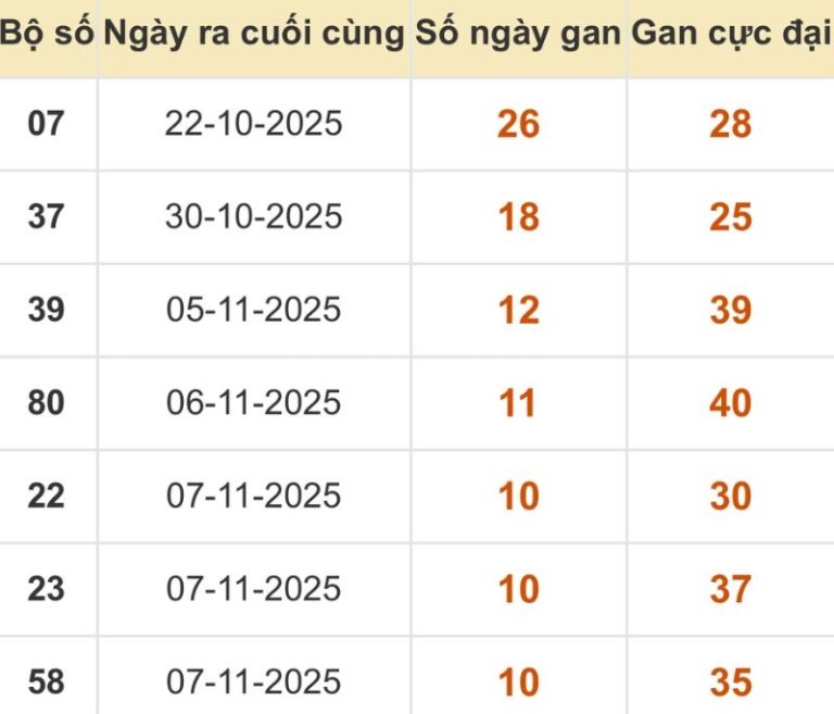 Thống kê lô gan XSMB 18/11/2025 cũng là một phương án được nhiều người lựa chọn để đặt cược trong kỳ này: