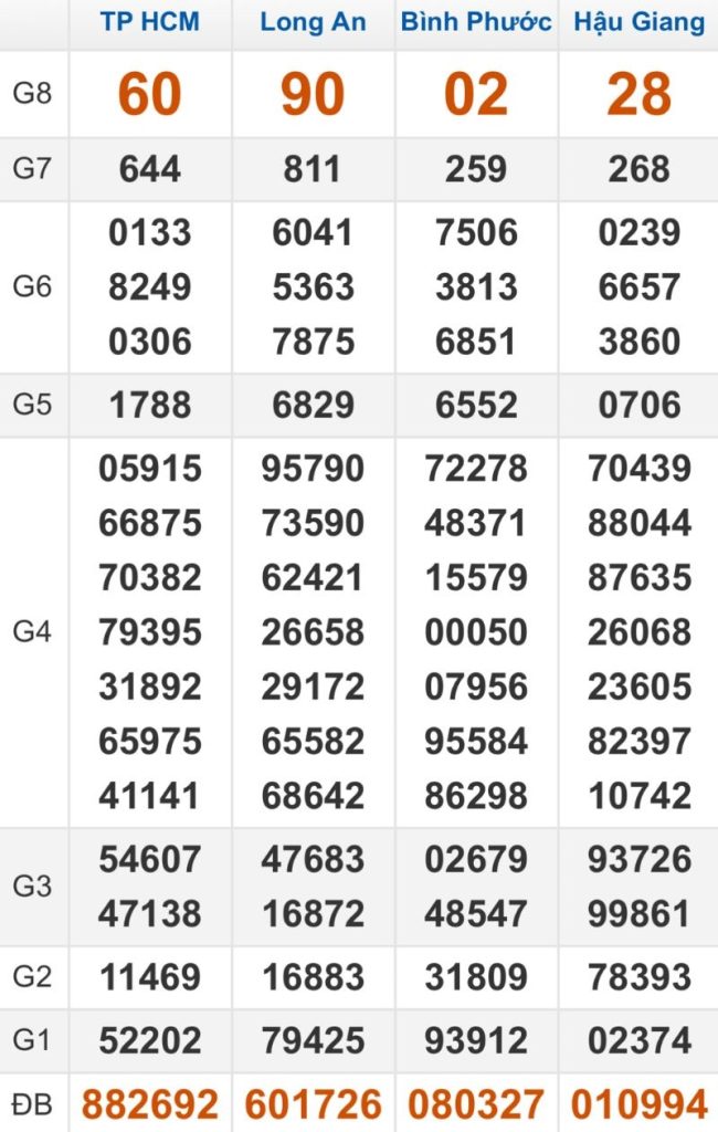 Chúng tôi cập nhật giải 8 kỳ trước XS Hồ Chí Minh về con 37 nên khuyên bạn chọn con lô 09 – 34 – 20 – 25 để đánh. Đề về 50 nên đánh con 10 – 01 – 23 – 93 xem sao.