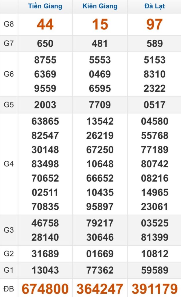 Theo gợi ý tuần trước Tiền Giang có giải 8 về con 38 nên hãy chốt số 09 – 40 – 02 – 15. Đề về 22 là dấu hiệu số 59 – 95 – 68 – 86 có khả năng về.