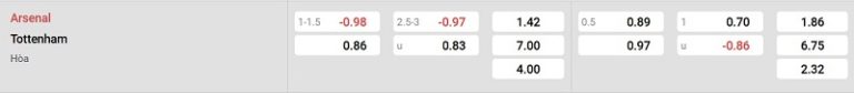Bảng tỷ lệ kèo Arsenal vs Tottenham: