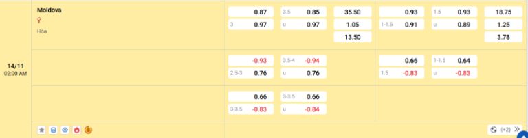Bảng tỷ lệ kèo Moldova vs Italia: